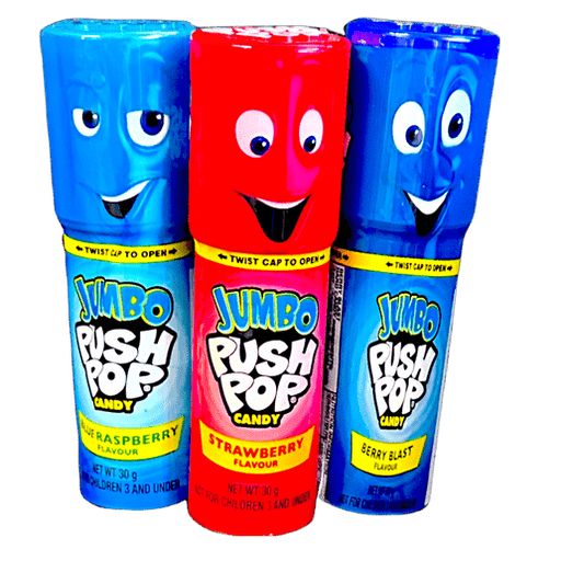 No reviewsBuy Jumbo Push Pop 30g Australia The ever popular push pop, upgraded to jumbo size! Choose from strawberry, berry blast and blue raspberry. If you ...