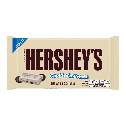 2 reviewsBuy Hershey's Cookies and Cream Giant Bar Australia BEST BEFORE: 31/08/2023 A Giant Bar of delicious Hershey white chocolate with cookie pieces in...