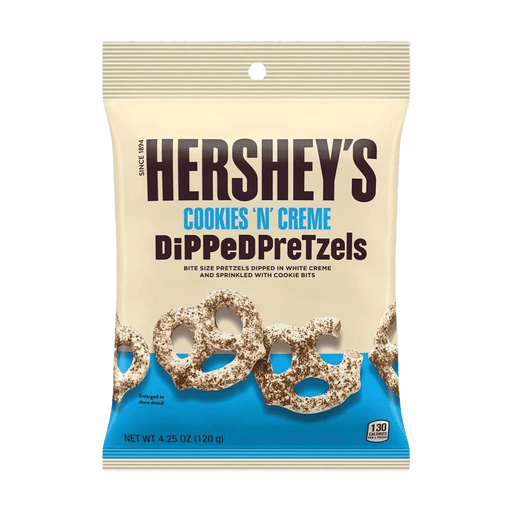 No reviewsBuy Hershey's Cookies and Cream Dipped Pretzels Australia Snacking just got better! Bite size pretzels are dipped in creamy HERSHEY’S White Creme a...