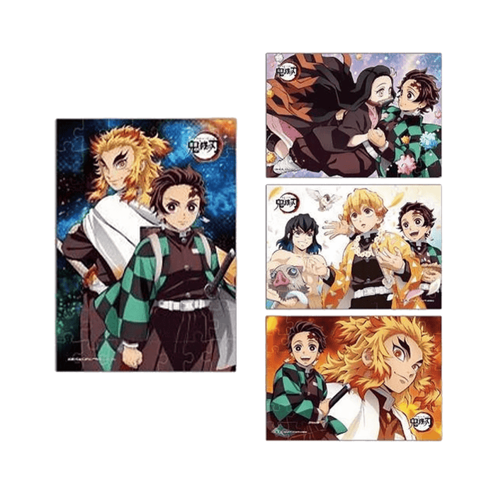 Colorful scenes from "Demon Slayer: Kimetsu no Yaiba" have been turned into jigsaw puzzles! Each puzzle has 56 easy-to-assemble large pieces. There are four different images, and they're randomly packed in boxes of eight -- each one comes with a piece of gum. Order yours now! Puzzle approximately 25.7cm x 18.2cm when completed.