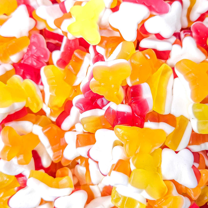 Indulge in authentic Swedish candy with fruity flavours and dual textures: a soft fruit foam side paired with a chewy gummy underside—shaped like delightful butterflies. Perfect for pick‑and‑mix assortments, party bags, and bulk orders.